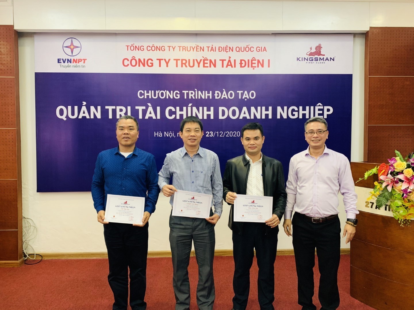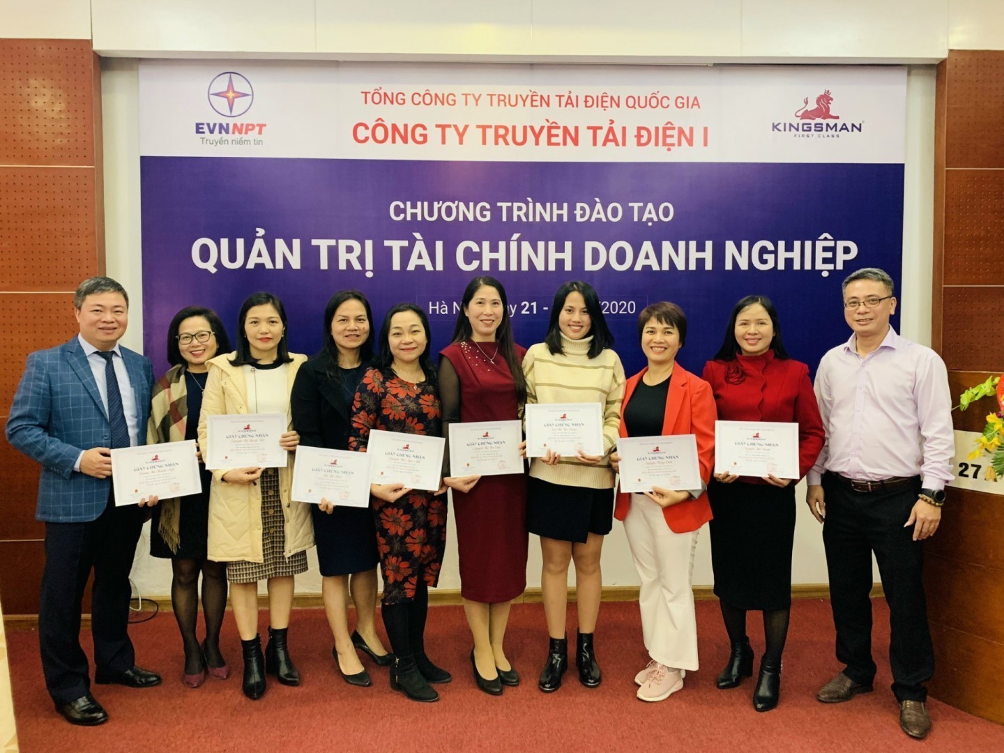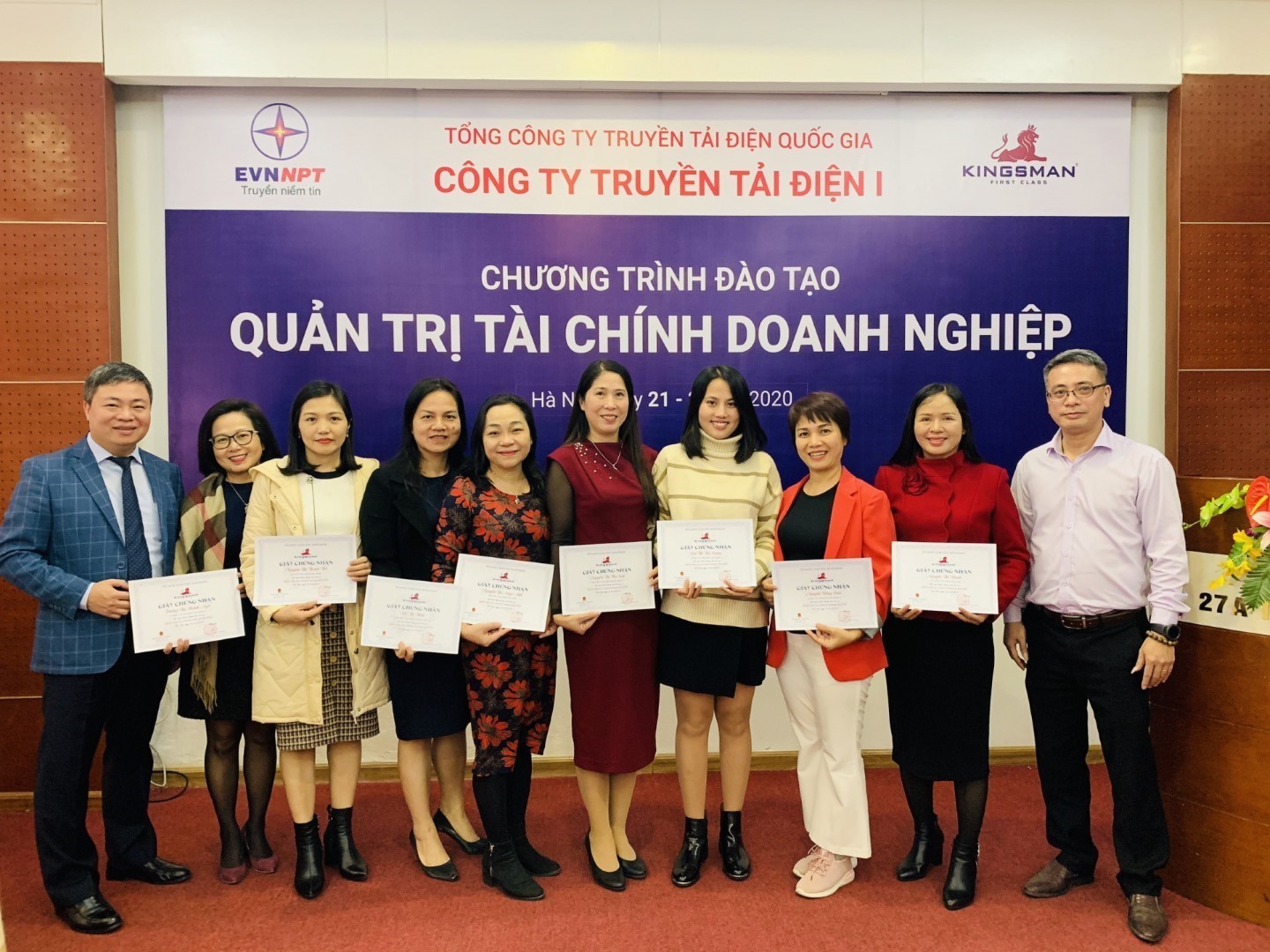 Trong 3 ngày (21/12/2020 – 23/12/2020) tại Hà Nội, Công ty Truyền tải điện 1 (PTC1) phối hợp với Công ty Cổ phần Tư vấn và Đào tạo Kingsman tổ chức Khóa đào tạo Quản trị tài chính doanh nghiệp. Đây là kế hoạch đào tạo trong Đề án nâng cao năng lực các Công ty Truyền tải điện của Hội đồng Thành viên Tổng công ty Truyền tải điện Quốc gia tại Quyết định số 57/QĐ-HĐTV ngày 18/03/200.