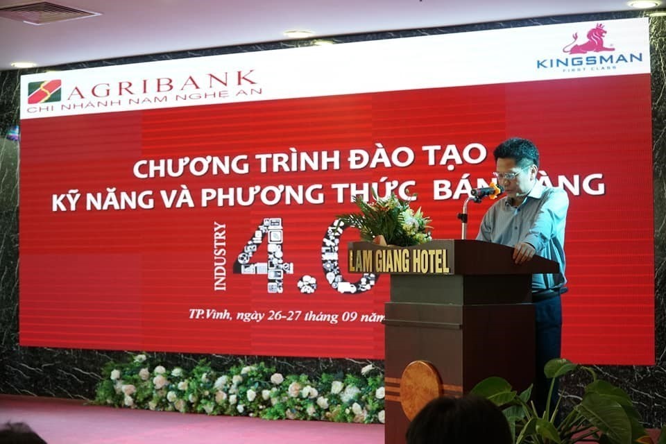 Trong hai ngày 26 và 27/09/2020, thực hiện theo chương trình đào tạo năm 2020, Tổ chức Giáo dục Kingsman đã tham gia đào tạo cho Agribank Chi nhánh Nam Nghệ An chương trình “Tư duy bán hàng và phương thức bán hàng 4.0” cho toàn thể cán bộ dưới sự giảng dạy trực tiếp của TS. Hoàng Trung Dũng.