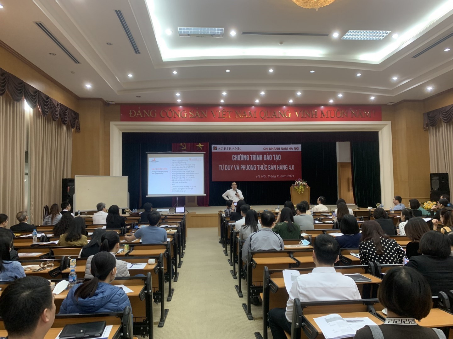 Bên cạnh hoạt động kinh doanh, Agribank rất quan tâm đến công tác phát triển kỹ năng cho đội ngũ cán bộ nhân viên. Vì vậy, vừa qua, Ngân hàng Nông nghiệp và Phát triển Nông thôn Việt Nam đã phối hợp cùng Tổ chức Giáo dục Kingsman tổ chức chương trình đào tạo “Tư duy và phương thức bán hàng 4.0” tại Hà Nội.